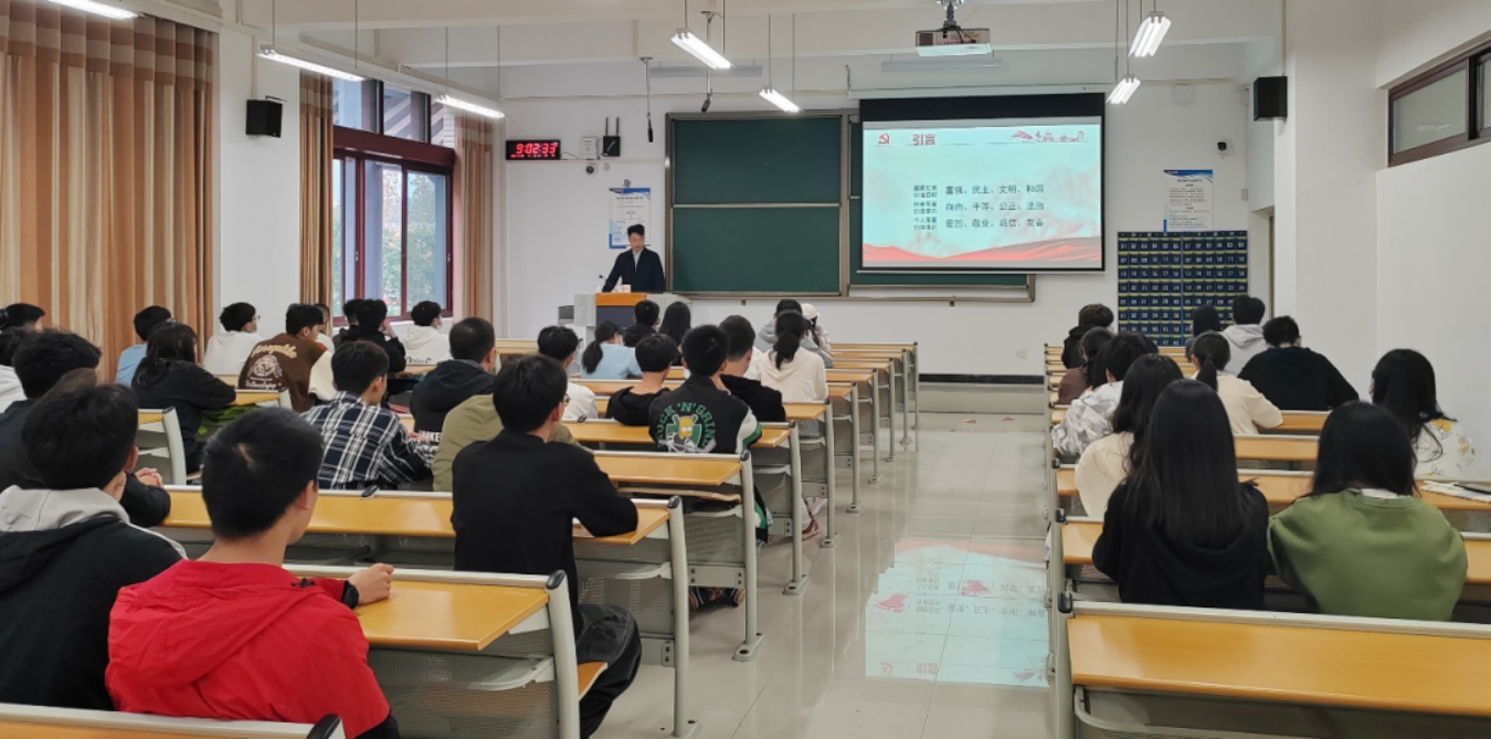 为深入学习贯彻落实党的二十大精神,广泛践行社会主义核心价值观,深入开展社会主义核心价值观宣传教育,深化爱国主义,集体主义,社会主义教育 婷婷五月宗合一区二区,着力培养担当民族复兴大任的时代新人,2022年10月26日上午,旅游管理系在A1-214教室组织开展了社会主义核心价值观宣讲活动,旅游管理系党支部副书记欧信忠主讲,熊亚老师及全体学生干部参加。