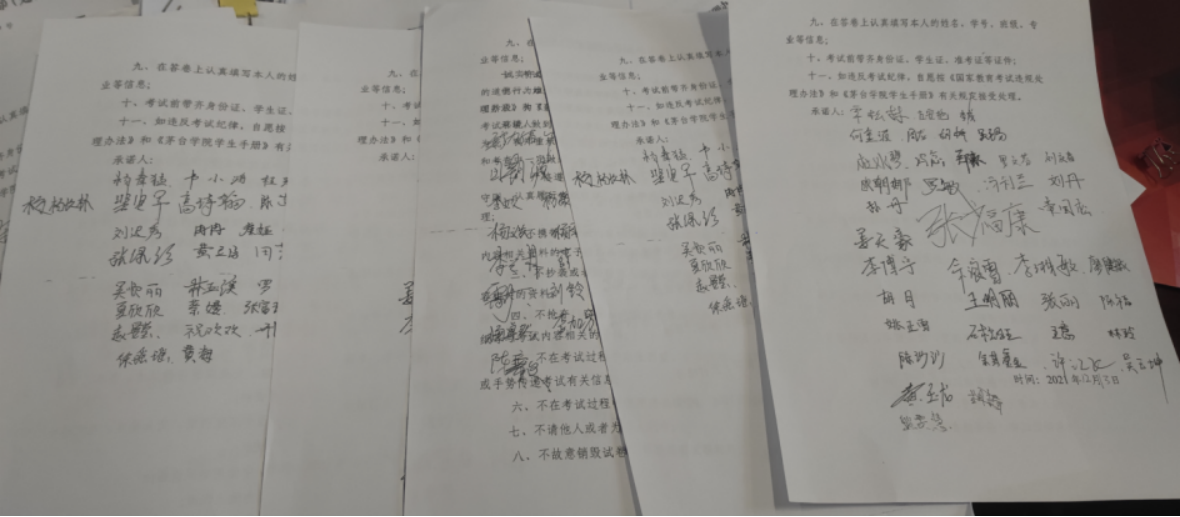 四,开展诚信考试主题班会 成人无码视频,为引导同学们自觉遵守考试纪律,诚信应试,以优良的考风促学风,旅游管理系组织开展了多场诚信考试教育主题班会,同学们对考试纪律,《国家教育考试违规处理办法》,《青娱乐极品视觉盛宴学生违纪处分办法》中相关知识进行了学习,深入了解了诚信考试的必要性和重要性,各年级辅导员老师强调了严肃考风考纪的重要性,要求同学们自立自律,刻苦学习,杜绝舞弊,学生代表就如何复习,时间安排等问题作出经验分享,全体同学签订了诚信考试承诺书。