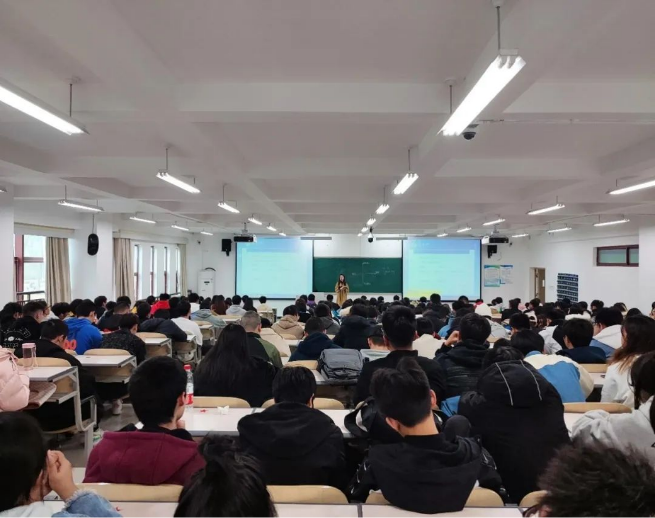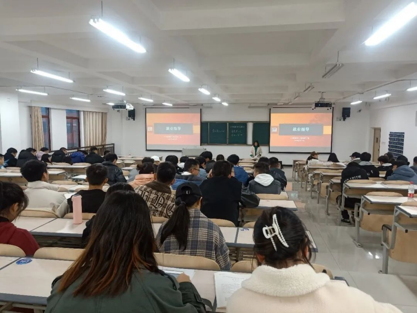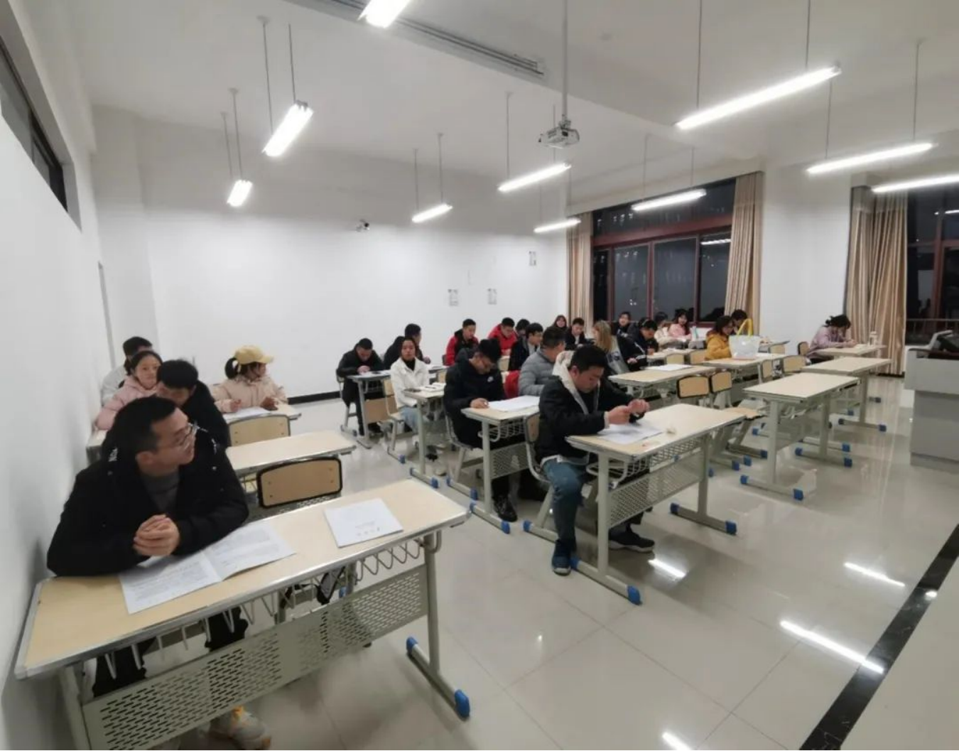 为了使同学们合理安排时间、有效地做好学习规划,在辅导员老师引导下,同学们在教室上晚自习。遵守自习纪律、认真学习、积极复习备考。