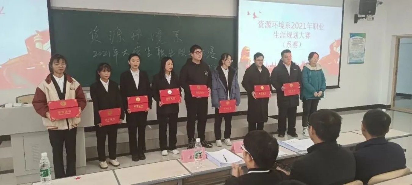二是活动育人,提高能力。为了让学生树立正确的职业观、成才观和就业观,进一步认识自我和了解就业环境,针对目前面临的外部环境中存在的机遇和挑战,综合分析自身的优势和劣势,做好科学的职业生涯规划并为之付出实际行动,努力向着职业生涯规划目标前进。资源环境系开展了职业生涯规划大赛活动,活动以PPT演讲的形式进行,通过评比和现场评委的指导,唤起同学们对职业生涯规划的兴趣,也让大家对职业生涯规划方法有了一定的了解。