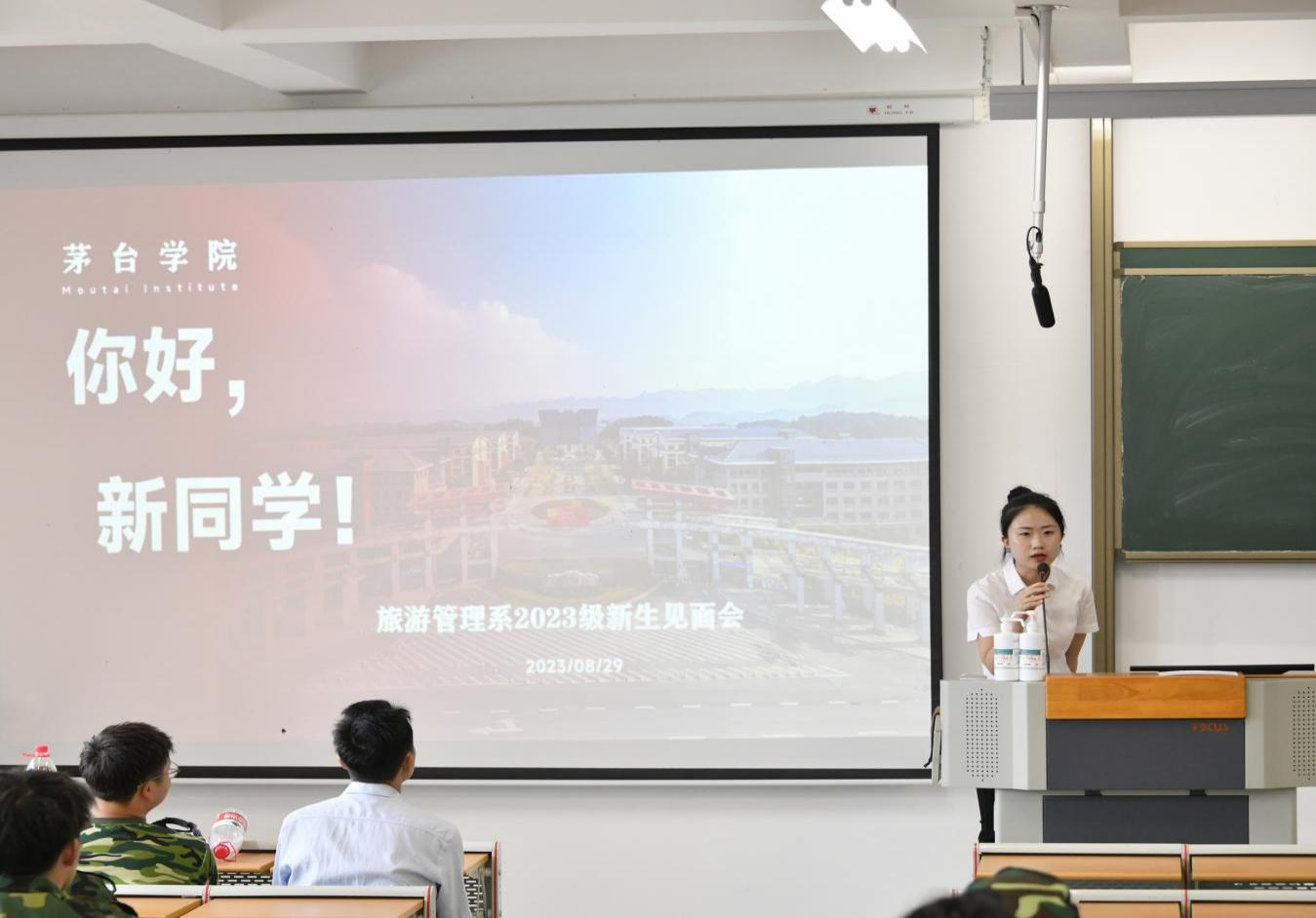 辅导员龚婷婷老师及各班班主任依次上台进行自我介绍 电影区欧美电影,讲述对新生的未来发展期望。