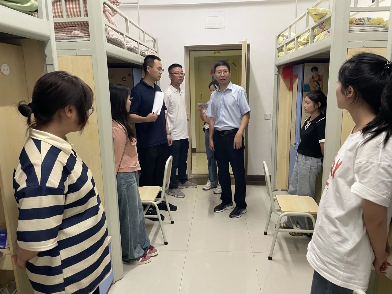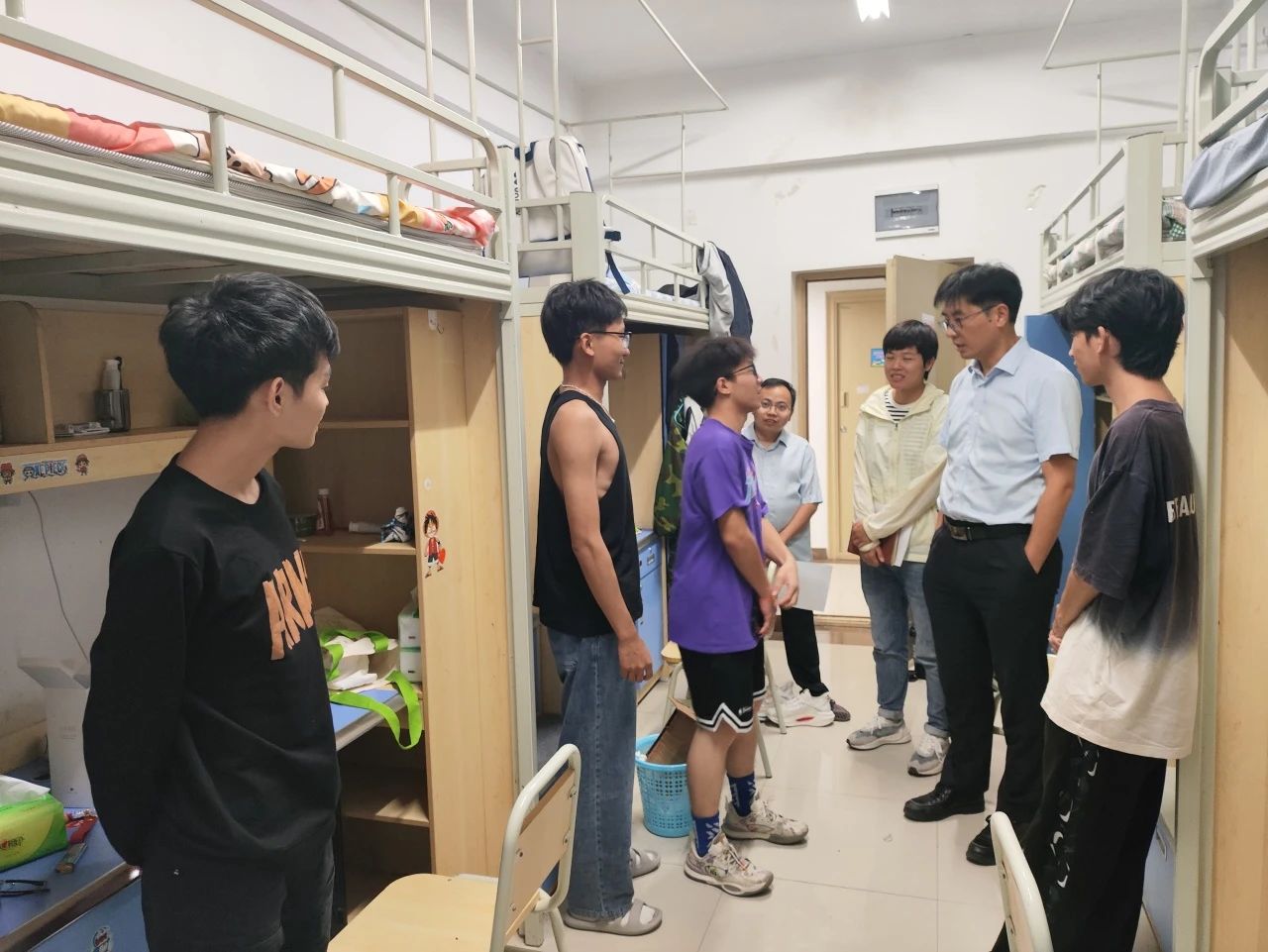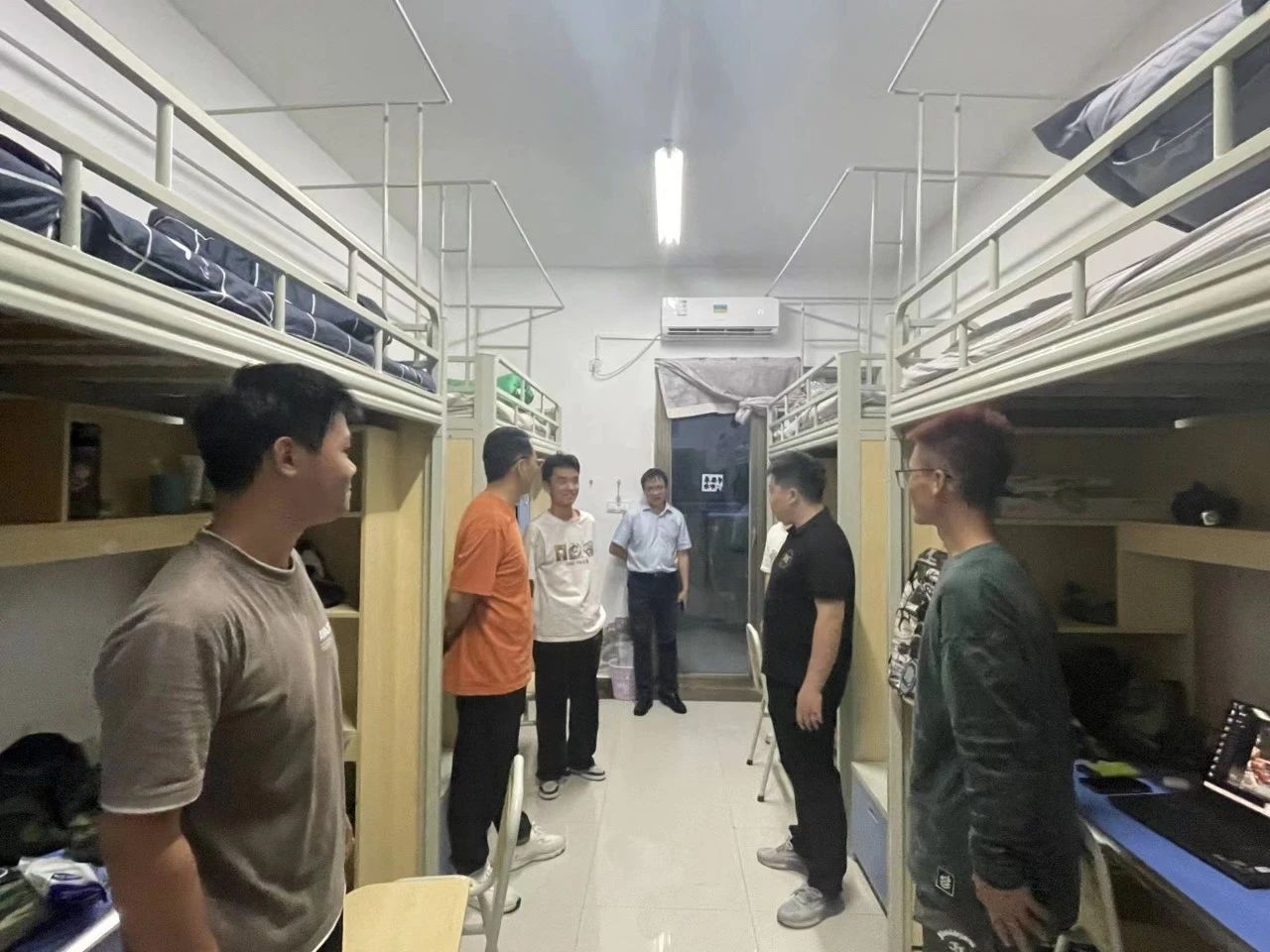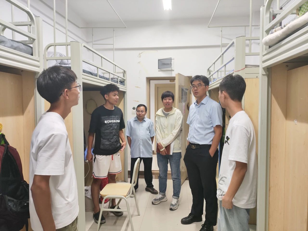 为进一步了解掌握2023级新生们的报到情况,8月27晚,校领导李增驰,邹洪芳,程庆 婷婷五月宗合一区二区,田戊戌,张春林及相关系负责人深入寝室与同学们面对面交流,了解同学们的入学感受和大学生活期望,在亲切交谈中引导新生尽快适应新生活,新环境。