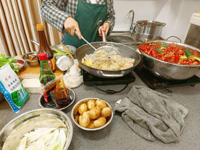 老师郭雪峰介绍,食工系一站式学生社区目前设置了1个共享厨房,在H5栋女生宿舍进行试点,自开放以来受到学生普遍欢迎,周末 姑父有力挺送苏清全文阅读,节假日或毕业季是共享厨房预约最火爆的时候,麻辣香锅,炸串烙锅,家常小炒,各类火锅……这些美味可口的菜肴被做出了新花样。