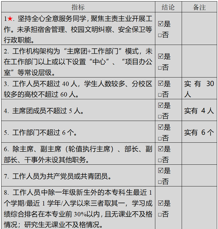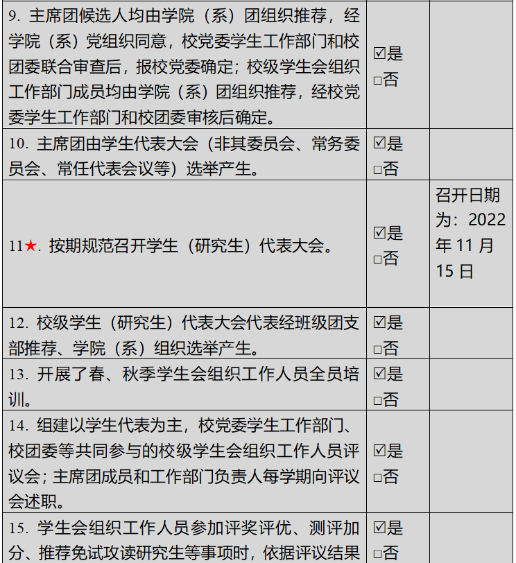 (一)校级学生会组织改革实共青团自评表