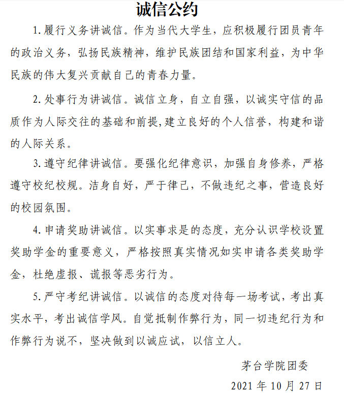 《诚信公约》以履行义务讲诚信 电影区欧美电影,处事行为讲诚信,遵守纪律讲诚信,申请奖助讲诚信,严守考纪讲诚信五个方面践行诚信规范,作为同学们今后学习生活中的基本准则。