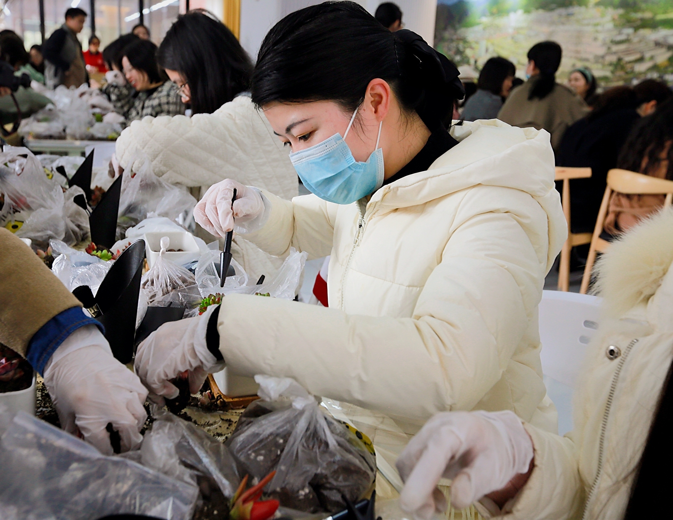 在老师的讲解和指导下,女职工们都迫不及待走进唯美的花艺世界,挑花,铺土,移种,搭配,固根,装饰 电影区欧美电影,忙得不亦乐乎。