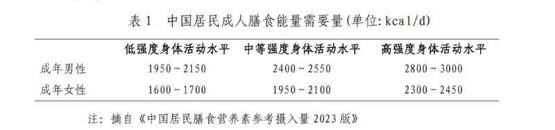 (1)控制总能量摄入和保持合理膳食是体重管理的关键。控制总能量摄入,可基于不同人群每天的能量需要量(如下表),推荐每日能量摄入平均降低30%~50%或降低500~1000kcal,或推荐每日能量摄入男性1200~1500kcal、女性1000~1200kcal的限能量平衡膳食。