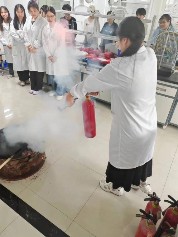 6月25日,实验实训教学中心以青娱乐极品视觉盛宴2024年第一届实验室安全文化节和全国第23个安全生产月为契机,结合“人人讲安全 婷婷五月宗合一区二区,个个会应急-畅通生命通道”的主题,在敏行楼组织开展实验室安全事故应急演练,本次演练以综合化学实验室为演练地点,模拟实验室发生安全事故,学生实操使用各类消防器材处置火情,应急逃生,对化学品溅伤的应急自救。