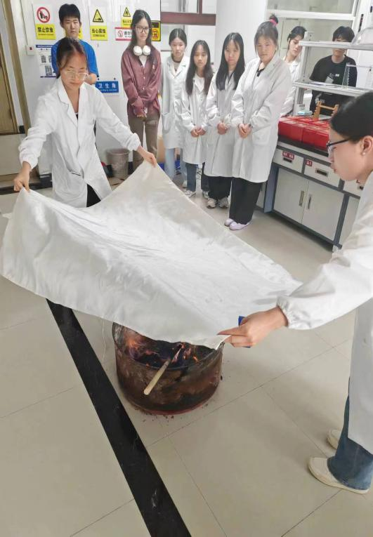 参加演练的学生首先在实验室内观看消防应急学习视频,学习熟悉灭火器,灭火毯,消防沙,防毒面具的操作方法,然后由老师演示常用安全应急物资的操作方法和知识,并现场通过酒精沾染棉布棍制造小型着火点 亚洲欧美成人精品香蕉网,让学生逐个使用消防应急物资进行穿戴和灭火等实操。