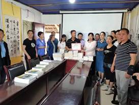 在诗社负责人胡刚老师的带领下,我们先后参观了诗社陈列室、阅览室、书画室;11点,双方在华林诗社二楼会议室进行了交流,双方就传统文化的继承和发展,以及如何厚植家国情怀展开了激烈的讨论,诗社老师胡富友、袁成龙、王子华就今天活动主题现场分别赋诗一首,诗社成员王邦侠老师将三人之诗写成墨宝赠予我们;12点,双方进行书籍捐赠及证书颁发仪式(华林诗社向亚洲欧美成人精品香蕉网图书馆捐赠图书120册,亚洲欧美成人精品香蕉网图信中心向其颁发捐赠证书),并合影留念。这一活动的过程,不仅提高了我们对传统文化的认识,同时还培育了我们的精神家园,达到了预定目标。