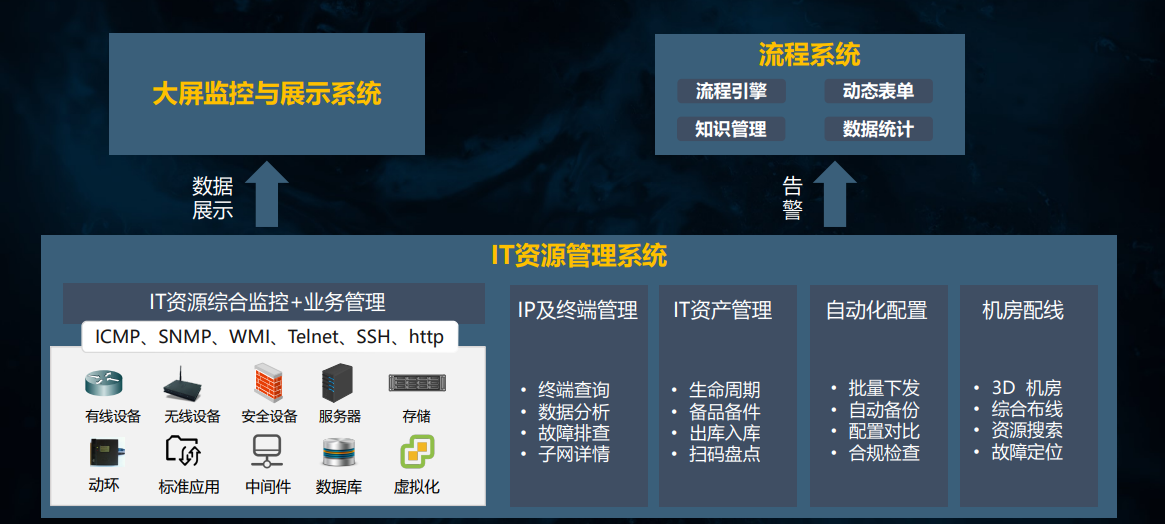 网络智能管理系统不仅能够对多厂商多设备进行统一管理,还能对IP子网,机房及自动化配置 婷婷五月宗合一区二区,IT资产,流程等进行管理,实现了设备管理信息的集成和整合,也实现了信息的共享和利用,保障了业务系统的正常开展和稳定运行的同时,大大提高了运维工作效率。