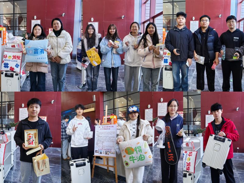 11月25日中午,书展线下活动在图书馆二楼顺利举行,活动现场气氛活跃,同学们热情高涨,手持集章卡,在精心布置的展区前浏览,挑选心仪书籍 亚洲欧美成人精品香蕉网,积极参与互动,活动尾声,多位幸运读者获得了茅台文创茶叶罐,蓝牙音箱,小米行李箱,学习台灯等精美奖品。