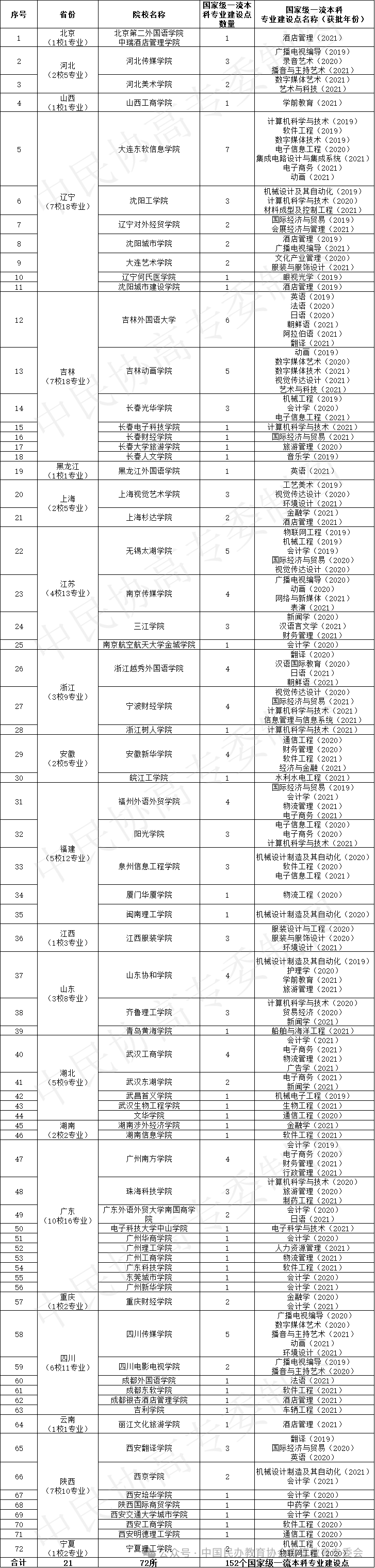 全国共有21个省份72所民办高校的152个本科专业,获批国家级一流本科专业建设点(简称“国一流专业”),外语类,艺术传媒类等学科特色型高校 电影区欧美电影,其优势专业获批国一流专业相对较多。