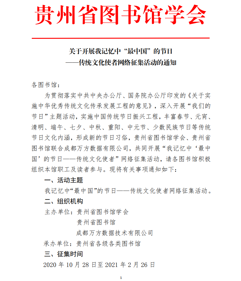 关于开展我记忆中“最中国”的节日 ——传统文化使者网络征集活动的通知