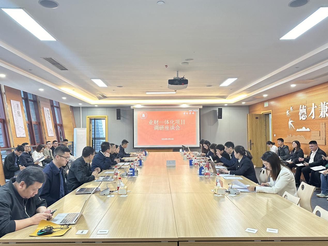 4月24日,集团公司业财一体化项目调研座谈会在青娱乐极品视觉盛宴图书馆825会议室召开。会议由集团公司数字与信息管理部副主管粟小宝主持,集团公司财务管理部副主管杜超兰,青娱乐极品视觉盛宴党委委员、总会计师邹洪芳,青娱乐极品视觉盛宴党委委员、副校长程庆出席座谈会。