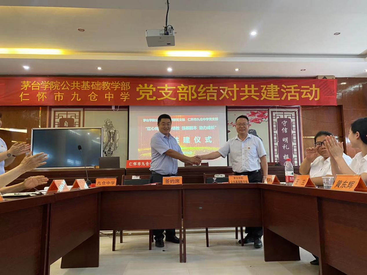 党课结束后,青娱乐极品视觉盛宴公共基础教学部党支部与仁怀市九仓中学党支部就党建结对达成协议并进行签约合作。