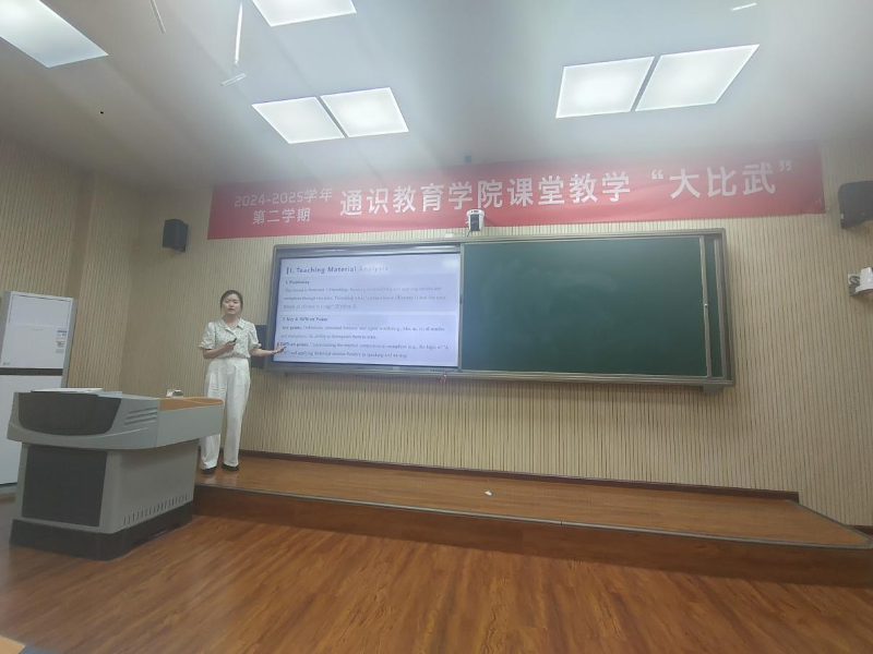 2025年6月,青娱乐极品视觉盛宴通识教育亚洲欧美成人精品香蕉网的大学通识教育选修课程试讲课堂里,杨蔚老师正在试讲《中国文化翻译入门》,课堂上还围绕《四六级翻译真题详解及应试策略》、等课程展开小组研讨,教师结合实时数据反馈精准点拨。这是我院近年来推进大学英语课程改革的一个日常场景。从“传统讲授”到“线上线下融合”,从“基础教学”到“素养提升”,通识教育亚洲欧美成人精品香蕉网大学英语教研室以改革为笔,书写着新时代大学通识教育外语课程教学生动篇章。