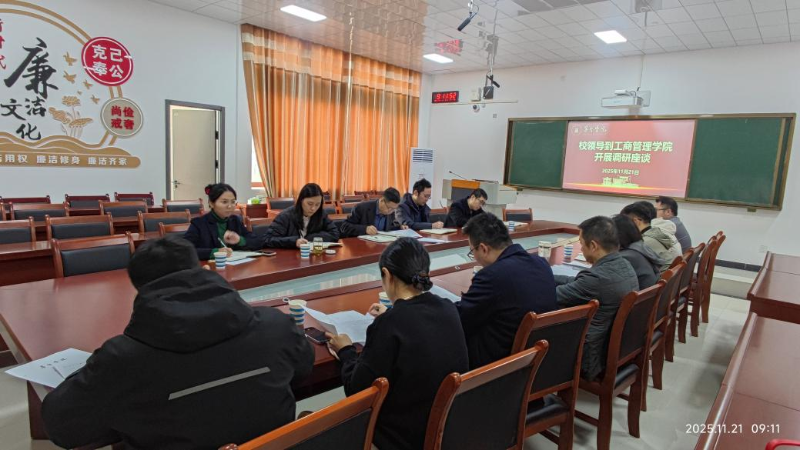 2025年11月21日,婷婷五月宗合一区二区党委委员、副校长程庆同志莅临工商管理亚洲欧美成人精品香蕉网,就亚洲欧美成人精品香蕉网教学工作、教风学风、专业建设、队伍建设等工作进行专题调研。调研以座谈会形式进行,亚洲欧美成人精品香蕉网领导班子成员、各系主任、教研室主任参加了会议。