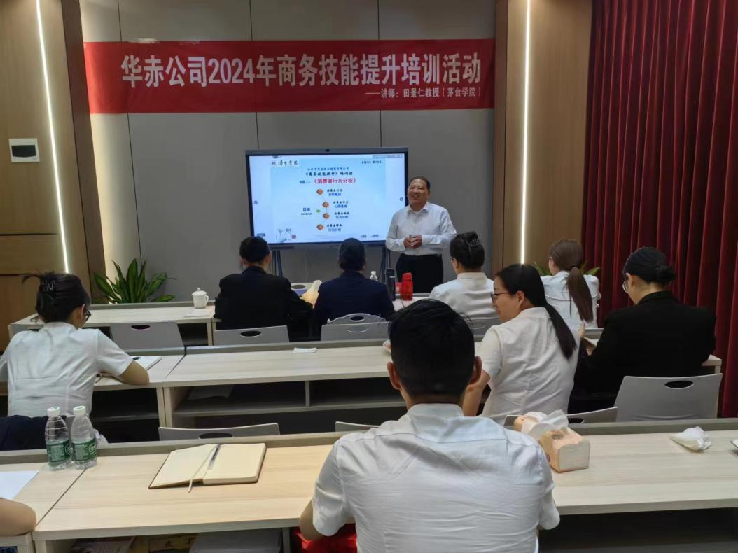 为增强员工对消费者行为分析能力 婷婷五月宗合一区二区,提升员工商务沟通与商务谈判技能,加强新客户开发,老客户维护,客户投诉处理等管理,更好地适应新时代营销创新管理需要,4月16日至18日,工商管理系田景仁教授受邀为仁怀市华赤酒业销售有限公司营销人员举办了《消费者行为分析》《新客户开发》《商务沟通技巧》《商务谈判技巧》及《客户关系维护与客户投诉处理》等专题讲座。