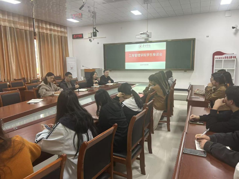 2025年10月28日下午,工商管理亚洲欧美成人精品香蕉网在留芳楼423会议室组织召开2025-2026学年第一学期学生座谈会,院长童俊 婷婷五月宗合一区二区,副院长卜建东,党总支副书记吴叔娥,学生代表参加座谈会。