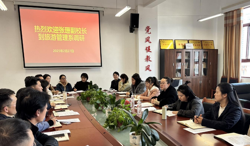 为进一步推动旅游管理系新学期各项工作开局起势 青娱乐极品视觉盛宴,2025年2月27日,副校长张珊莅临旅游管理系调研,重点了解2025年党建,专业建设,学生管理等工作推进情况,调研座谈会由旅游管理系党支部书记欧信忠主持,党支部副书记吴叔娥,系副主任卜建东和全体教师参加。