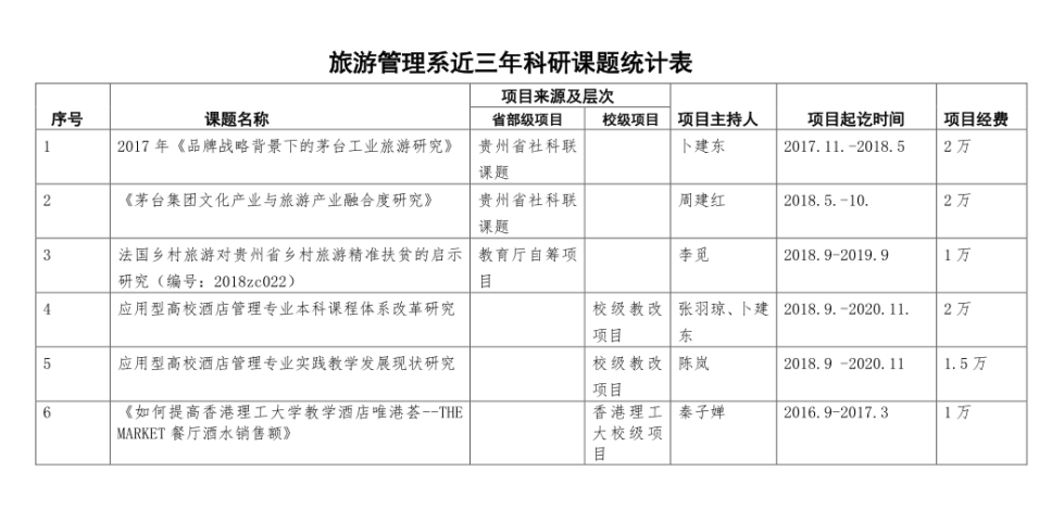 旅游管理系近三年科研课题统计表