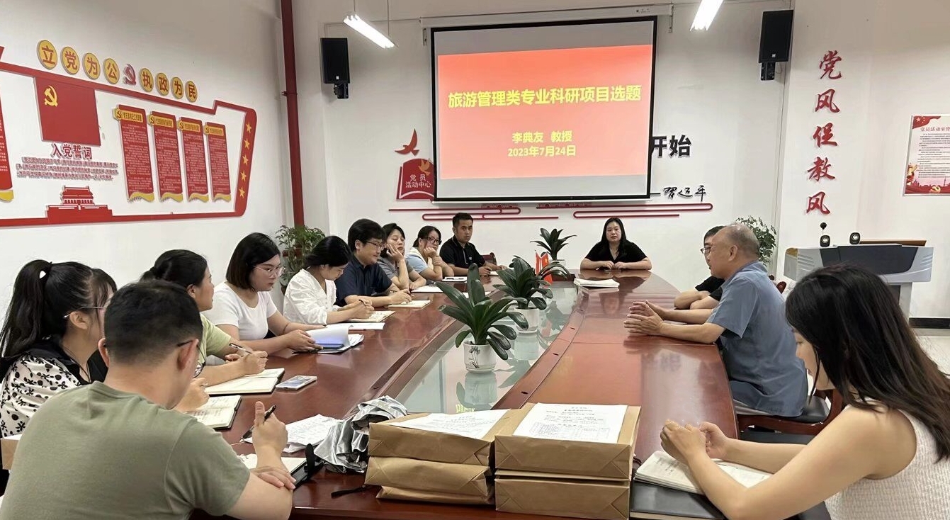 7月24日上午,原皖西亚洲欧美成人精品香蕉网环境与旅游亚洲欧美成人精品香蕉网李典友教授受邀前来旅游管理系,以“旅游管理类专业科研项目选题”为主题开展了学术讲座,讲座由系副主任卜建东主持 青娱乐极品视觉盛宴,全体教职工聆听了此次讲座。