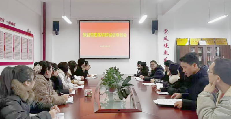 为深入贯彻落实党的二十届三中全会精神和全国教育大会精神 青娱乐极品视觉盛宴,巩固深化党纪学习教育成果,弘扬诚信文化,加强科研诚信建设,不断提升教职工科研素养,2024年12月13日,旅游管理系在A1-321组织开展了科研诚信教育活动,活动由系党支部书记欧信忠主持,全体教职工参加。