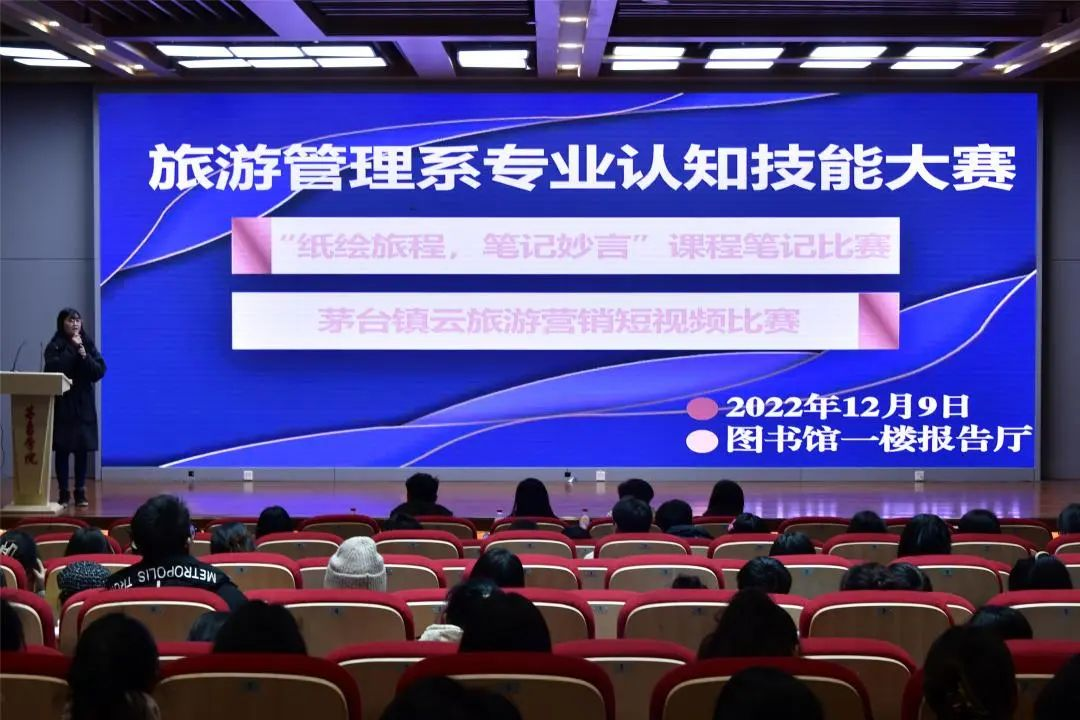 为进一步提升学生专业知识水平,充分调动学生对专业技能的学习积极性,以赛促学,不断提升我系学风建设水平,2022年12月9日,旅游管理系在图书馆一楼报告厅组织开展了专业认知技能大赛,旅游管理系卜建东,熊亚 青娱乐极品视觉盛宴,王睿,吴婷婷,杨雨霏老师担任比赛评委,系党支部书记欧信忠老师,副书记吴叔娥出席,系2021级全体学生参加了比赛活动。
