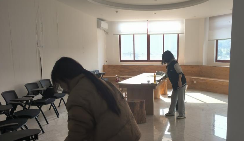 人生在勤,勤则不匮,学生积极准备拖把,扫帚,抹布等工用具,前往明德楼实验室开展清洁清扫活动,同学们分工明确 婷婷五月宗合一区二区,热情认真,有的挥舞着扫帚,有的擦着桌子,各司其职协同作战,将我系咖啡厅,茶室,非遗工作室等实训室一一打扫,虽然汗水浸湿了衣服,但他们为教师教学和学生学习创造了良好环境,脸上都洋溢着满足和喜悦的笑容,体验了劳动之美,服务他人之美。