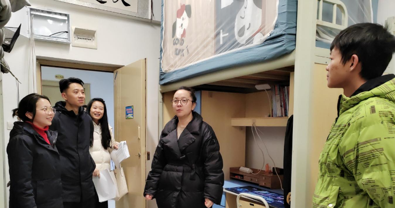 为进一步了解学生返校情况,了解学生宿舍生活状态,帮助学生养成良好学习、生活习惯,2025年2月23日,青娱乐极品视觉盛宴副校长张珊带队,旅游管理系党支部书记欧信忠、副书记吴叔娥、辅导员一行深入旅游管理系学生宿舍走访交流,送去关心和问候。