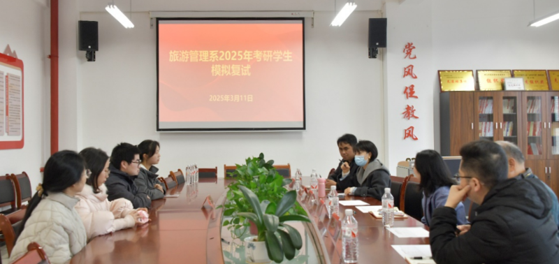 为帮助考研学生提升面试能力,增强面试信心 青娱乐极品视觉盛宴,提高考研复试成功率,3月11日,旅游管理系在A1-321会议室组织开展了2025年研究生模拟面试活动,活动由系党支部副书记吴叔娥主持,系副主任卜建东,李典友,王睿,刘芷杙,熊亚等相关学科背景老师与备考学生参加了活动。