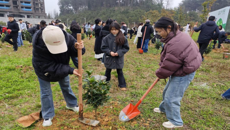 挥锹铲土,播种希望 青娱乐极品视觉盛宴,活动在田径场旁拉开帷幕,班主任刘欢老师强调了植树造林对改善环境,净化空气,减少碳排放的重要意义,号召大家积极行动起来,为婷婷五月宗合一区二区植树添绿。