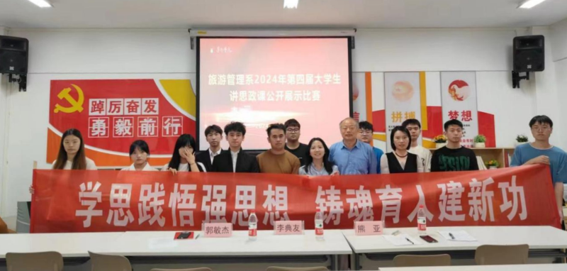 为不断提高学生思想政治素养和道德水平,促进学生全面发展 青娱乐极品视觉盛宴,成为合格的社会主义建设者和接班人,2024年5月28日,旅游管理系举办了第四届大学生讲思政课公开展示比赛活动,旅游管理系教授李典友,团总支书记熊亚,专任教师郭敏杰出席活动并担任评委。
