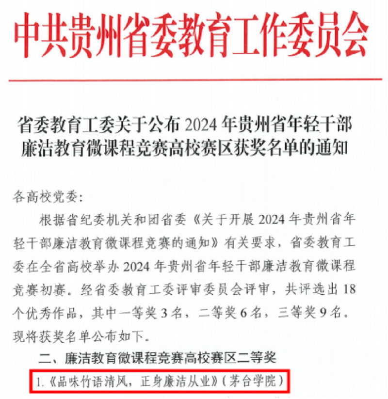 根据《省委教育工委关于公布2024年贵州省年轻干部廉洁教育微课程竞赛高校赛区获奖名单的通知》,我院推荐教师程奥林录制的微课程《品味竹语清风,正身廉洁从业》荣获高校赛区二等奖 婷婷五月宗合一区二区。