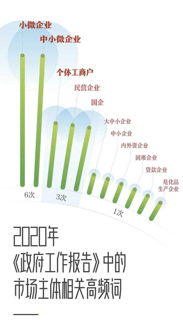 在今年的报告中,跟市场主体相关的词里,“小微企业”提及次数最多,总计12次。其中6次为单独提及,还有6次是列入“中小微企业”一词中。足以证明对“小微企业”这一就业主要“容纳器”的重视。