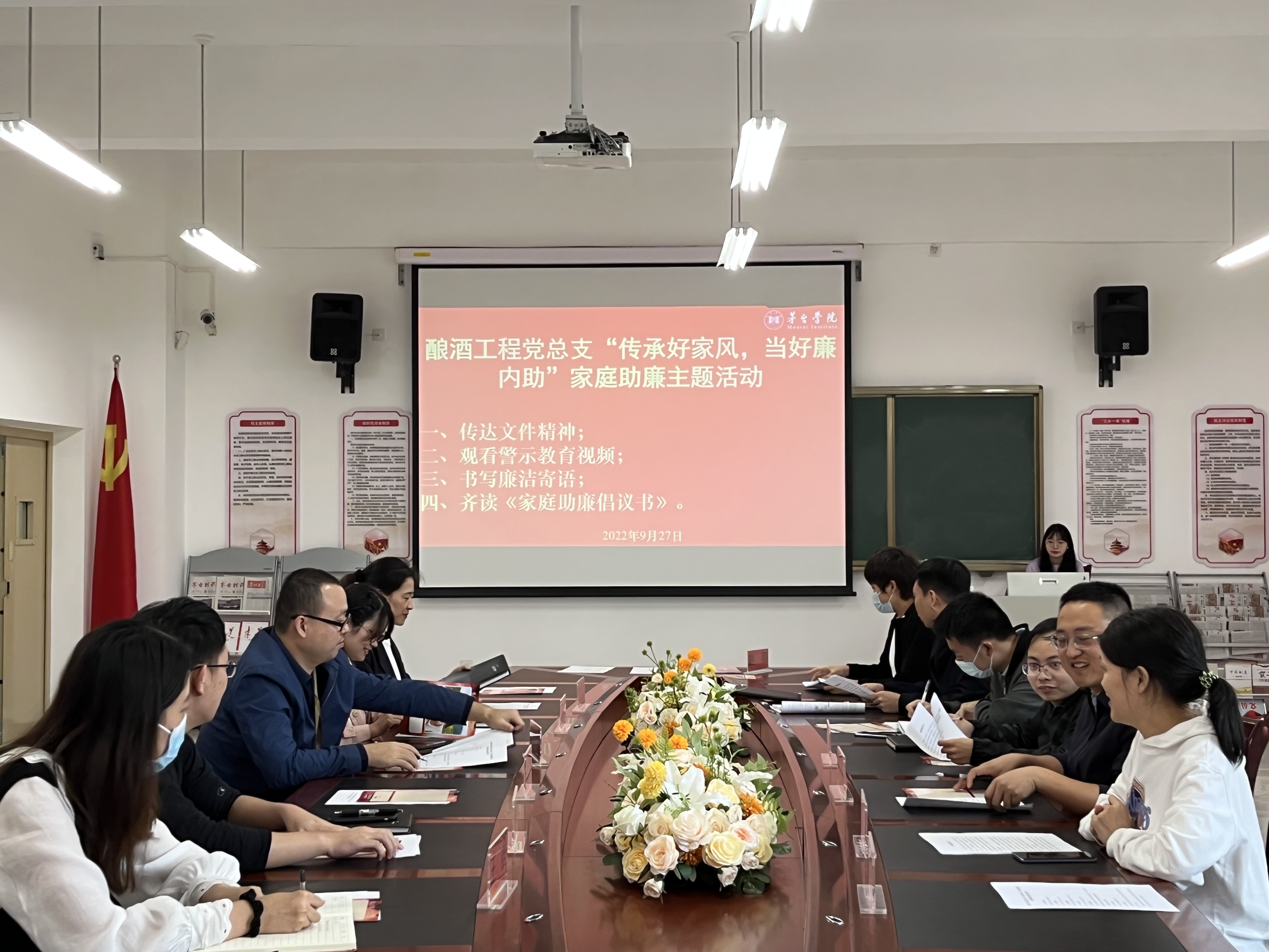 2022年9月27日 亚洲欧美成人精品香蕉网,酿酒工程系党总支在党员活动室(A2-208)组织开展“传承好家风 当好廉内助”家庭助廉主题活动。
