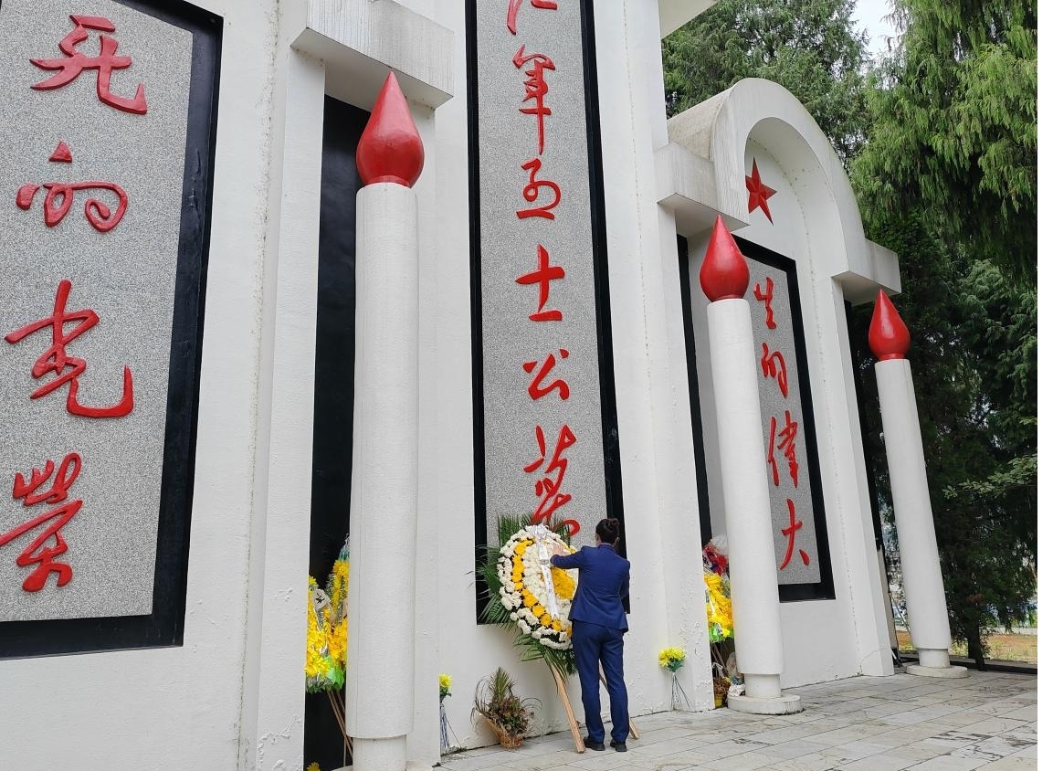 烈士芳名高墙涌,玉石花环表心灵,为缅怀在鲁班场战役中牺牲的革命先烈,在红军烈士公墓前,张珊同志整理挽联 亚洲欧美成人精品香蕉网,并代表全体党员同志向革命先烈敬献花圈。