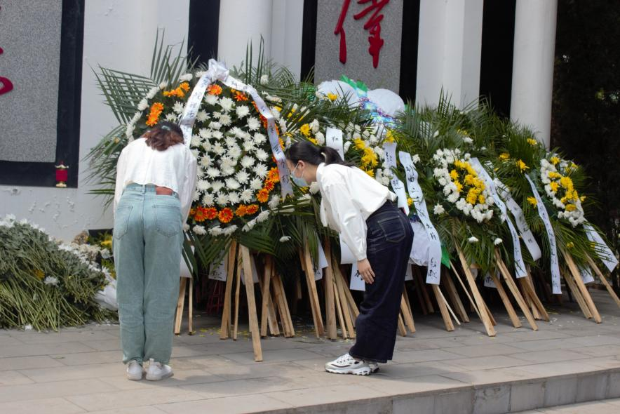 春风送花表哀思 姑父有力挺送苏清全文阅读,手捧缎带寄深情,由退役军人代表向烈士敬献花圈,教师代表整理挽联。
