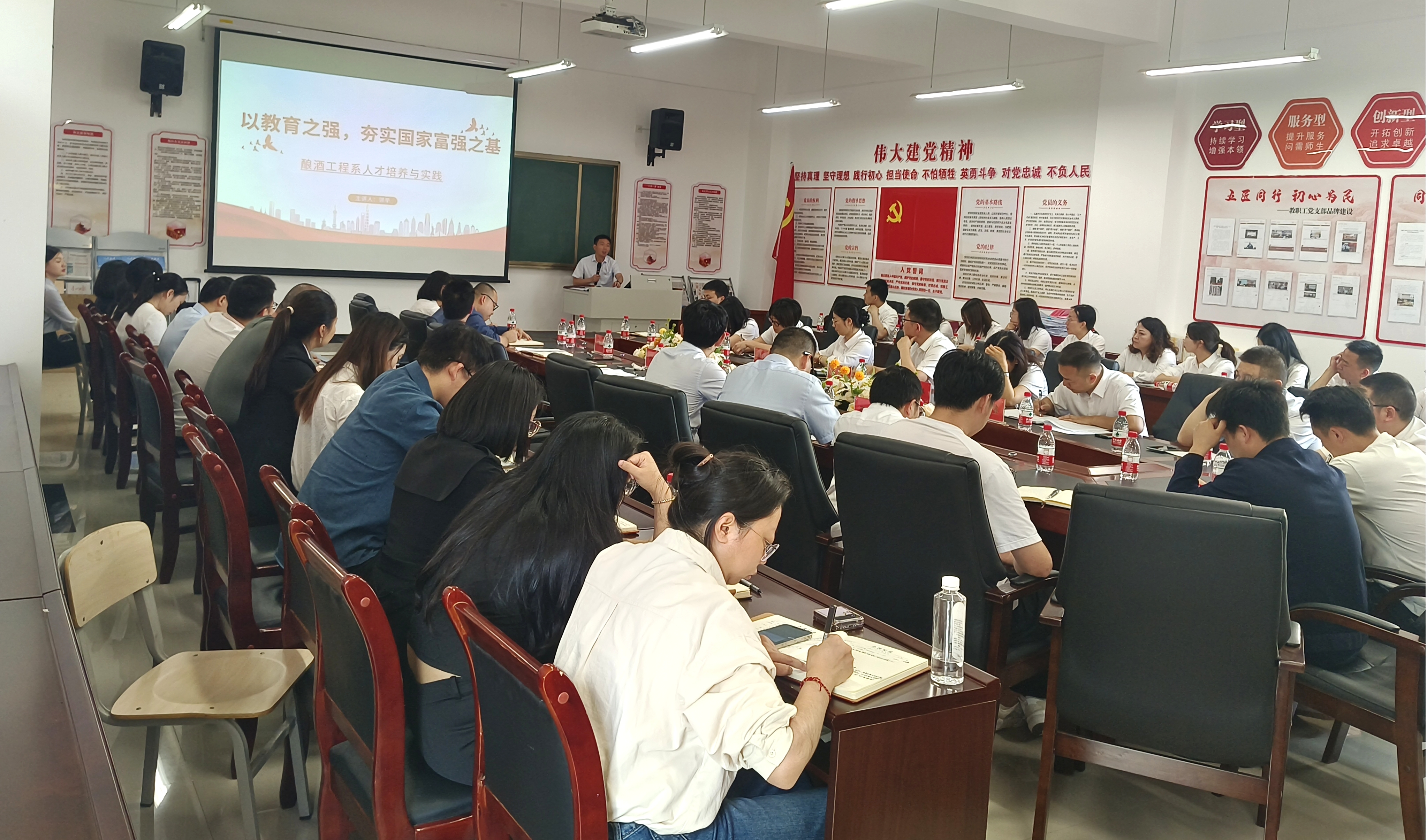 酿酒工程系党总支书记,主任郭举同志以“以教育之强,夯实国家富强之基——酿酒工程系人才培养与实践”为主题做党课,郭举同志以习近平总书记关于教育的重要论述作为切入点,深入解读了教育对于国家富强,民族振兴的重要意义,随后,郭举同志从我系学科专业及平台,师生情况及人才培养目标等多方面向大家详细介绍了酿酒工程系在人才培养上的探索与实践,酿酒工程系已经向酿酒行业培养输送了上千名本科生,今后也将继续深耕教书育人本职工作,竭力打造产业链,教育链 电影区欧美电影,人才链,创新链“四链合一“的人才培养平台,为社会,为行业培养更多高素质应用型本科人才。