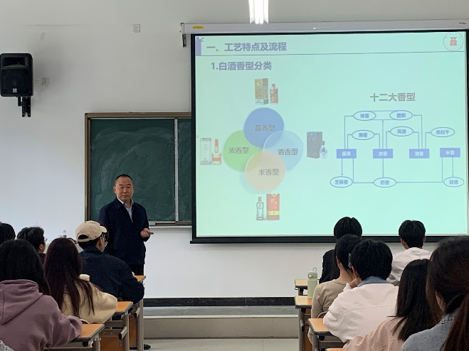 2023年4月26日,茅台贵州股份有限公司制酒二十八车间主任杨喜讯到校为我系学生讲授《白酒工艺学》课程关于大曲酒生产技术-酱香型大曲酒,杨主任主要从酱香型大曲酒的风味特征,酱香型大曲酒的十大工艺特点,工艺操作流程,入窖发酵条件等知识进行详细的讲解,同时杨主任还结合自己的生产管理经验分享了制酒过程中的工艺控制参数对酱香型白酒质量的影响 婷婷五月宗合一区二区。