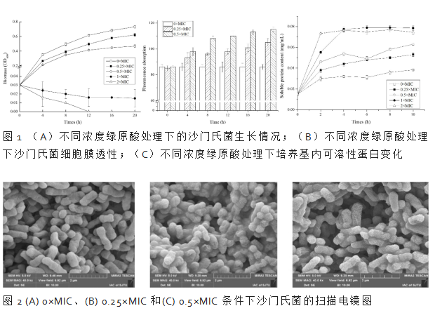 我系杨亮副教授在国际期刊Frontiers in Microbiology(Q2,IF: 6.064)联合发表了题为“Inactivation of Salmonella typhimurium SL1344 by Chlorogenic Acid and the Impairment of Cellular Integrity”的研究性论文。研究由国家自然科学基金(31201290、32160553)、贵州省教育厅科技拔尖人才支持项目(黔教合KY字[2018]082)、贵州普通本科高等婷婷五月宗合一区二区青年科技人才成长项目(KY[2020]239)等资助。 杜仲是贵州药食同源三宝之一,其富含的绿原酸因具有生物活性而受到广泛关注。本研究在深入研究了杜仲绿原酸(CGA)对沙门氏菌的抑菌活性及损伤机制。在解析CGA对沙门氏菌的MIC及MBC基础上,分析了不同浓度CGA下的沙门氏菌生长情况、细胞透性及细胞形态等指标。发现CGA对沙门氏菌的MIC为6.25 mg/L,在亚致死剂量浓度的CGA中生长,沙门氏菌的细胞外膜透性及可溶性蛋白的释放明显增强,沙门氏菌细胞表现出更多的变形和萎缩,证实了沙门氏菌细胞的完整性在CGA的存在下受损。最后,进一步分析了细胞损伤的可能原因,发现其在CGA处理后膜的流动性增加,这可能是CGA引起细胞外膜刚度降低的原因。本研究从机制层面证实了杜仲绿原酸的抑菌活性,为杜仲内天然产物的开发提供了理论基础。