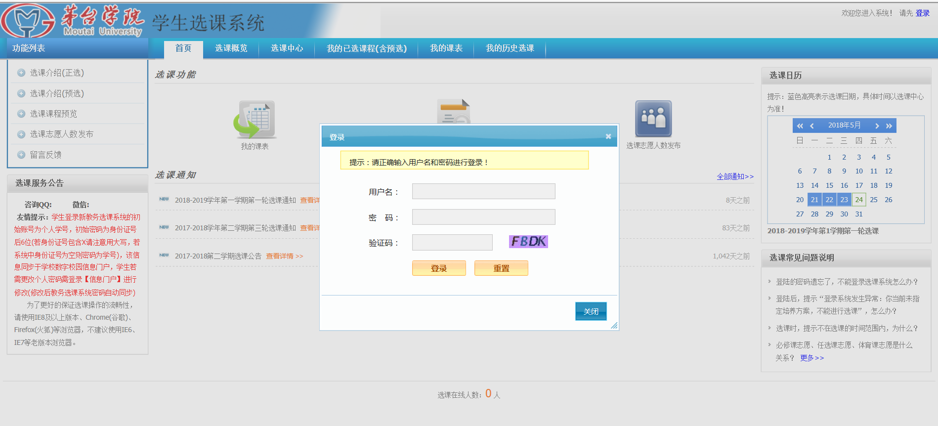 1.第一轮选课时间安排:2018年5月25日00:00-2018年5月27日23:59。本次选课有课程冲突设置和人数上限限制。