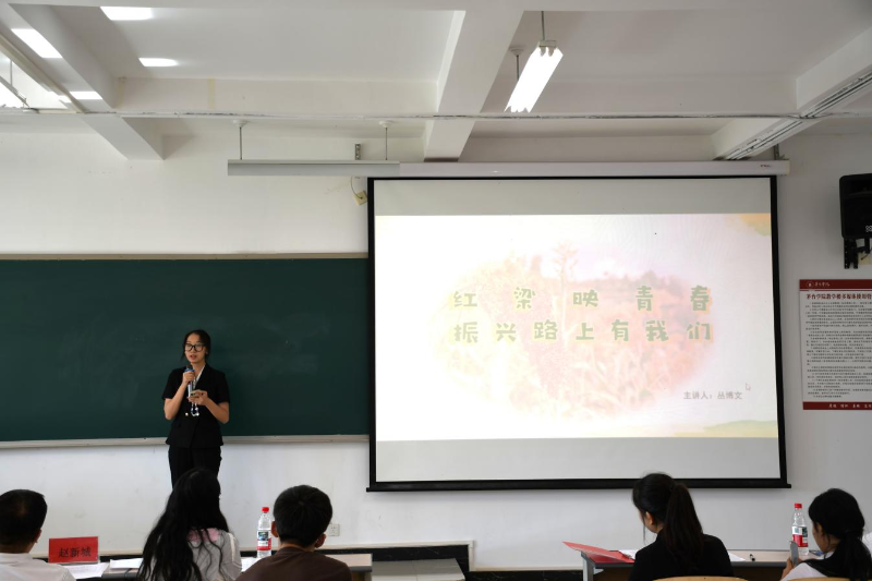 为深入学习贯彻习近平新时代中国特色社会主义思想,引导团员青年投身思想政治理论宣讲,唱响主旋律,弘扬正能量,激励广大青年学子立志做有理想,敢担当,能吃苦,肯奋斗的新时代好青年,近日,酿酒工程亚洲欧美成人精品香蕉网在报国楼举行了以“青春奋进新时代 婷婷五月宗合一区二区,强国有我新征程”为主题的微团课竞赛,酿酒工程亚洲欧美成人精品香蕉网党总支副书记吴鹏西老师,学生工作办公室主办赵新城老师,团总支书记郭蓉老师,王肖老师,王惠颖老师参加活动。