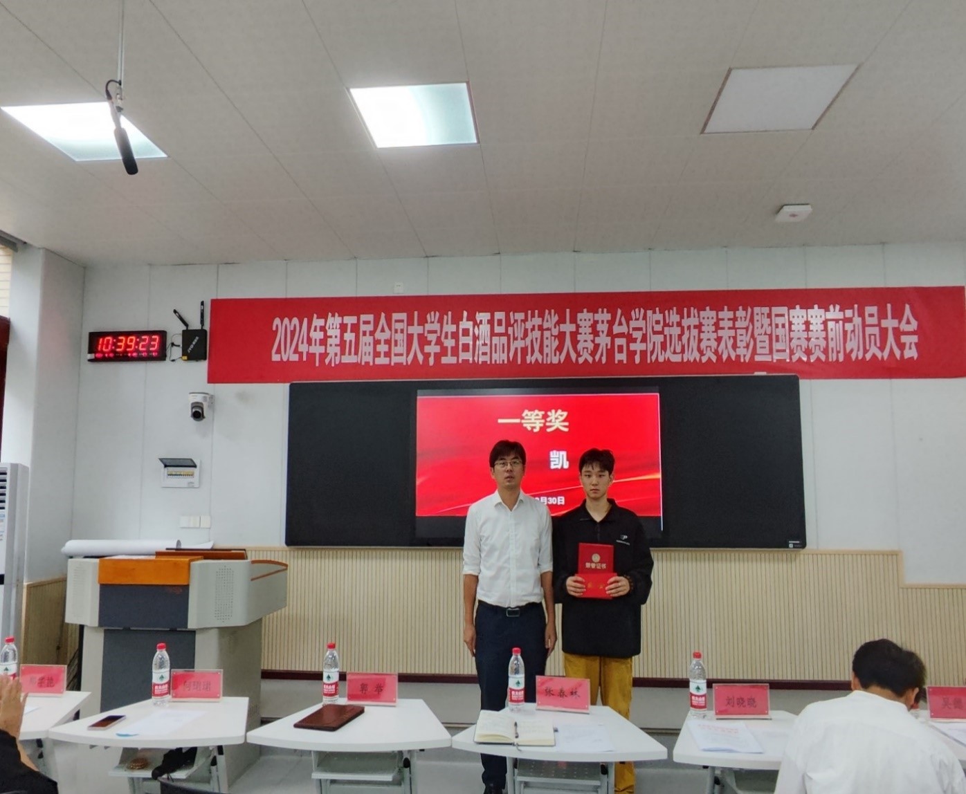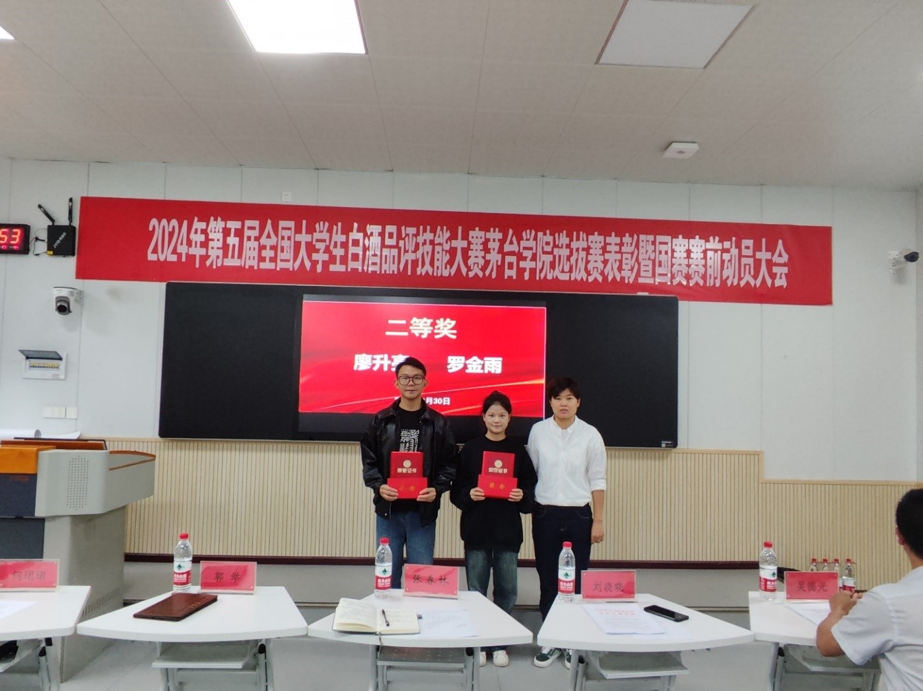 酿酒工程系党总支书记,主任郭举宣读《青娱乐极品视觉盛宴选拔赛(决赛)获奖表彰名单》《贵州省选拔赛获奖选手及晋级选手表彰名单》并为大家颁发证书 亚洲欧美成人精品香蕉网,希望同学们戒骄戒躁,预祝各位同学在国赛当中取得优异的成绩。