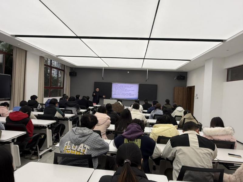 为深化产教融合 婷婷五月宗合一区二区,搭建行业专家与师生的交流平台,2025年 12月26日下午,酿酒工程亚洲欧美成人精品香蕉网“酿酒大师讲堂”第十六期在 A2-105教室顺利开讲,本期讲堂邀请贵酒集团常务副总经理胡海洋担任主讲嘉宾。