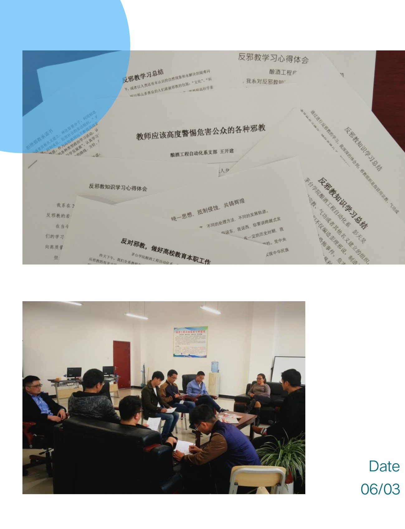 学习通过会议宣贯、QQ群上传电子版反邪教知识读本形式开展,自动化系要求系全体在校教师针对自身对反邪教知识学习的认识,每人完成一份500字左右的学习总结。