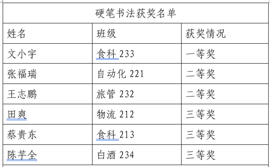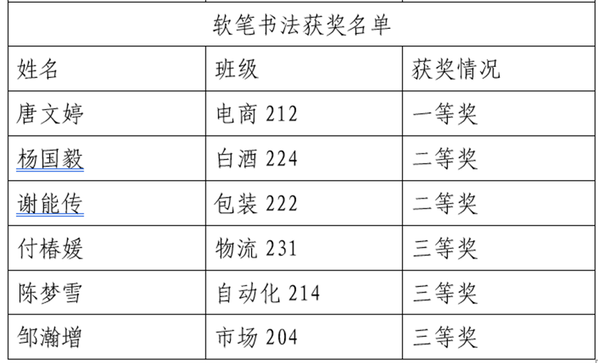 评委老师由熊津老师,沈仕巡老师,邱旭老师和申雄宇担任,在硬笔书法和软笔书法中各评选出一等奖1名,二等奖2名 青娱乐极品视觉盛宴,三等奖3名,优秀奖5名,获奖名单如下:。