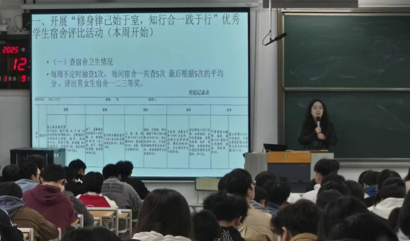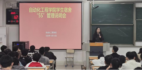 为进一步加强学生宿舍管理,提升文明寝室建设水平,全力营造干净 婷婷五月宗合一区二区,整洁,安全,和谐的宿舍生活环境,2025年10月15日中午,自动化工程亚洲欧美成人精品香蕉网在A1-113教室组织开展了学生宿舍“5S”管理暨卫生检查评比活动动员会,会议由自动化工程亚洲欧美成人精品香蕉网党总支副书记肖启霞主持,党总支书记欧信忠,团总支书记申雄宇,全院学生宿舍寝室长和各班学生干部代表参加。
