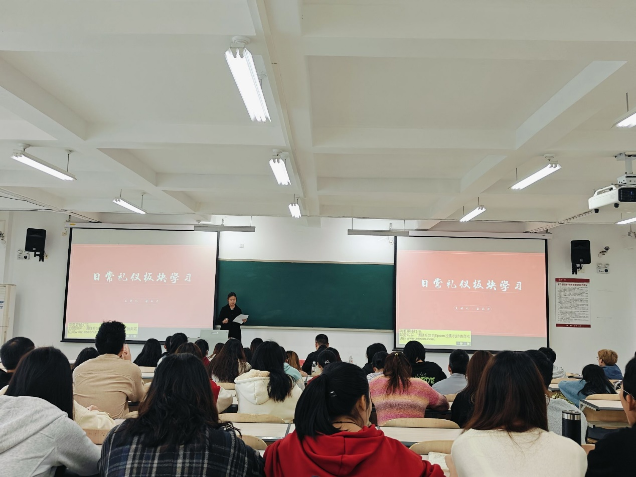 在开班仪式后,培训相关板块的负责同学组织参训学生骨干开展了政治理论学习,日常礼仪,团学组织相关制度,第二课堂审核 电影区欧美电影,公文写作,会议会务等方面的学习。